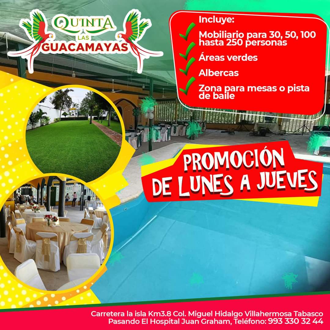 Sabemos lo importante que es para tí ese día, por eso queremos celebrarlo contigo y ayudarte a que todo salga a la perfección, celebra con Quinta las guacamayas Eventos: Bodas, XV años, aniversarios, graduaciones, despedidas, eventos corporativos y todo tipo de eventos. Nuestros salones se adaptan a tus necesidades y las de tus invitados.